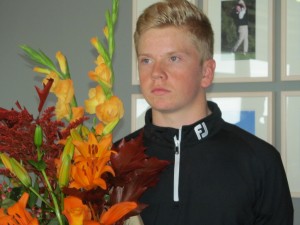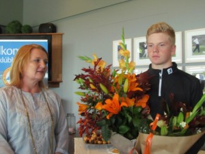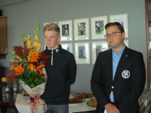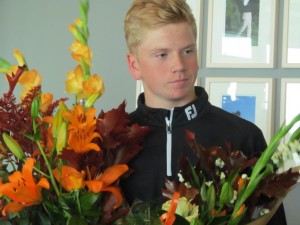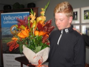 Voru Gísla sem og Ragnhildi Kristinsdóttur, GR, afhentir blómvendir í viðurkenningarskyni fyrir frábæran árangur.