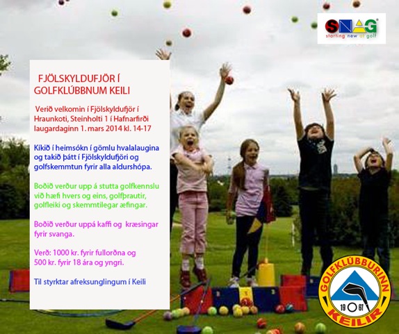 „Laugardaginn 1. mars kl. 14-17 halda ungu kylfingarnir í Keili Fjölskyldufjör í Hraunkoti, Steinholti 1 í Hafnarfirði.
