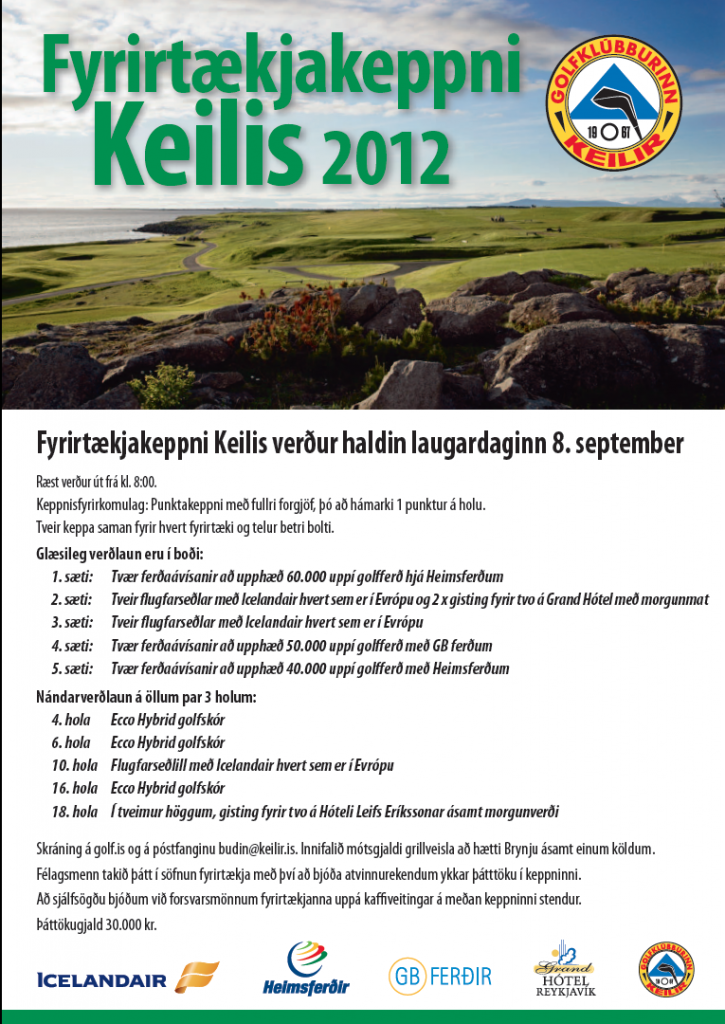 Eitt glæsilegasta golfmót ársins, Fyrirtækjakeppni Keilis verður haldið 8. september nk. Þó farið sé að líða að hausti er golfvöllur Keilis í frábæru standi, hefur sjaldan eða aldrei verið betri.