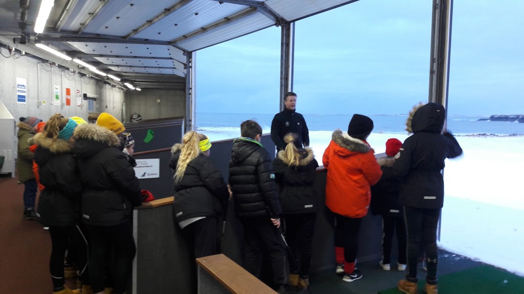 Allir fengu að prófa að pútta og slá og var heimsóknin mjög vel lukkuð.