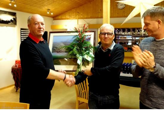 Jóhann fékk málverk að gjöf frá klúbbnum fyrir vel unnin störf í þágu GKB í 11 ár. Mynd: GKB GKB: Jóhann Friðbjörnsson hættir sem formaður