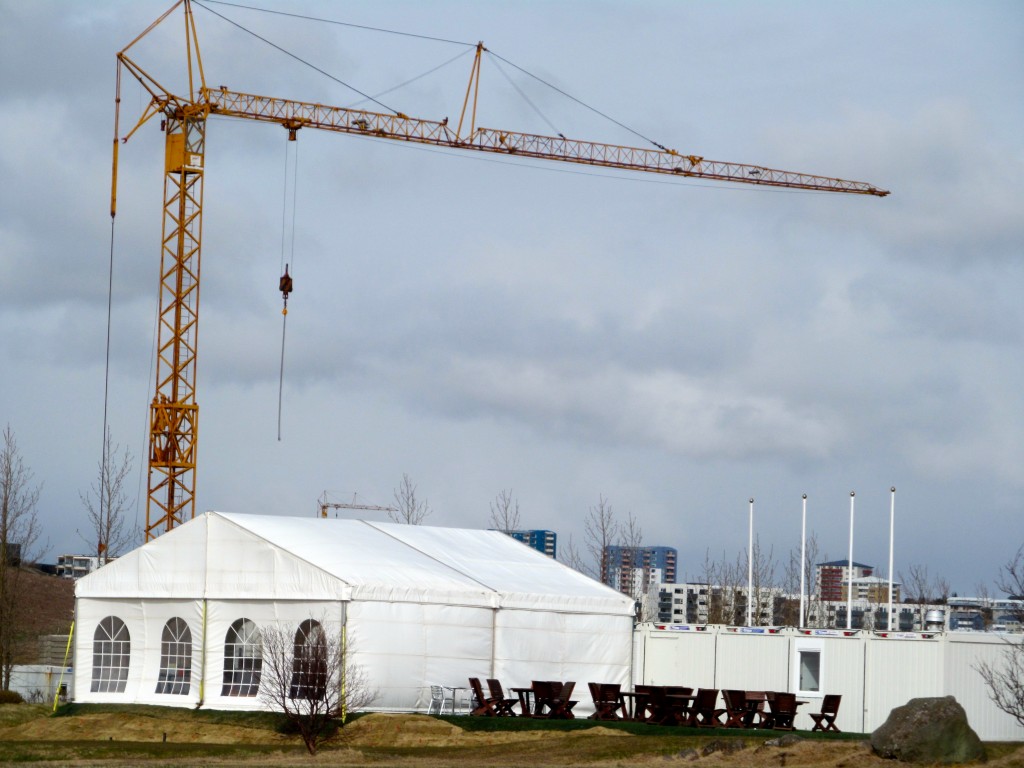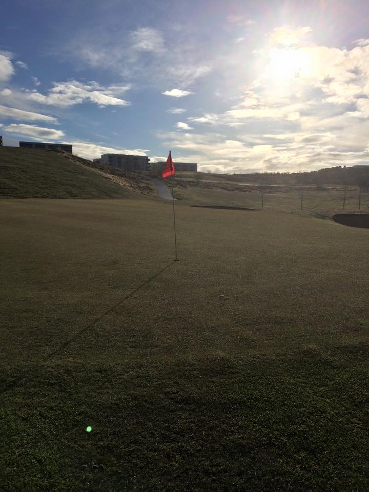 Búið er að reisa bráðabrigða klúbbhús s.s. sjá má á mynd Golf 1 hér að ofan.