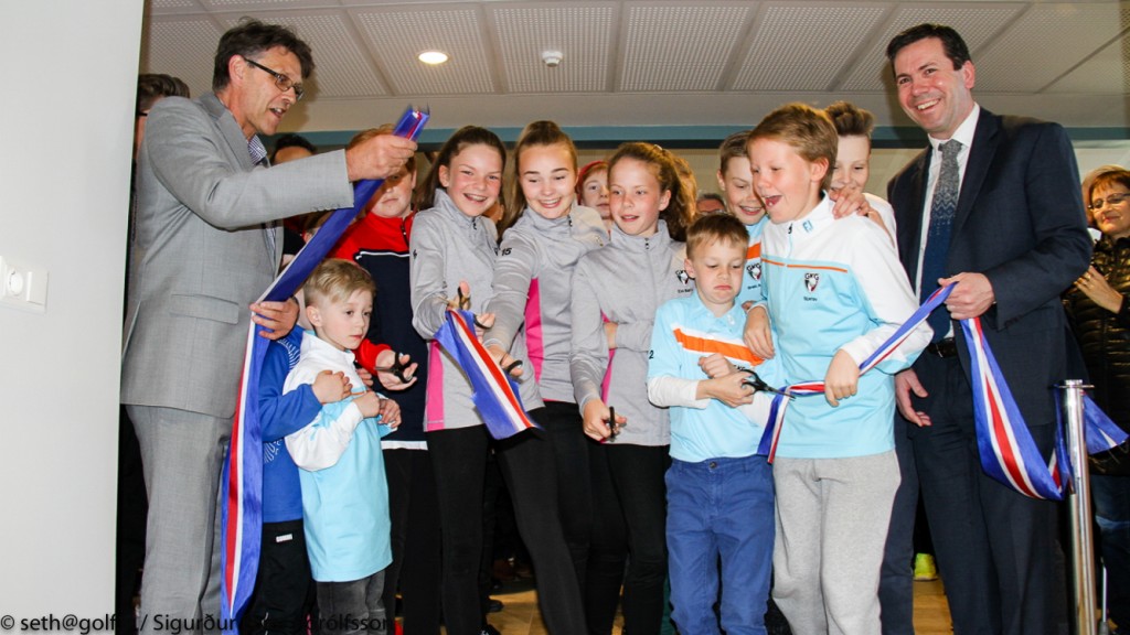 Ungir kylfingar úr röðum GKG klipptu á borða með formlegum hætti undir lok athafnarinnar og fengu þar með tækifæri til þess að prófa nýju æfingaaðstöðuna fyrstir allra. Eins og áður segir var mikið fjölmenni viðstatt í dag þegar íþróttamiðstöðina var opnuð.