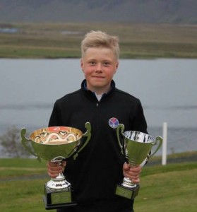 Í 2. sæti í höggleik án forgjafar varð Adam Örn Stefánsson, GSE og í 3. sæti varð heimamaðurinn Guðjón Reyr Þorsteinsson, GKJ, sem var ansi óheppinn með upphafshögg sitt í bráðabananum. Adam Örn hlýtur í verðlaun gjafakort upp á kr. 20.000 í Bónus og Guðjón Reyr gjafakort upp á kr. 15.000,- í Bónus.