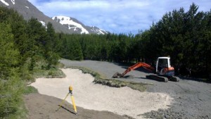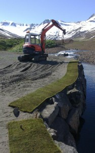 Nýja eyjuflötin á par-3 7. braut hins nýja Hólsvallar á Siglufirði. Mynd: Af Twitter síðu Edwins Roalds GKS: Af endurskipulagningu Leirutanga og framkvæmdum við nýja golfvöllinn