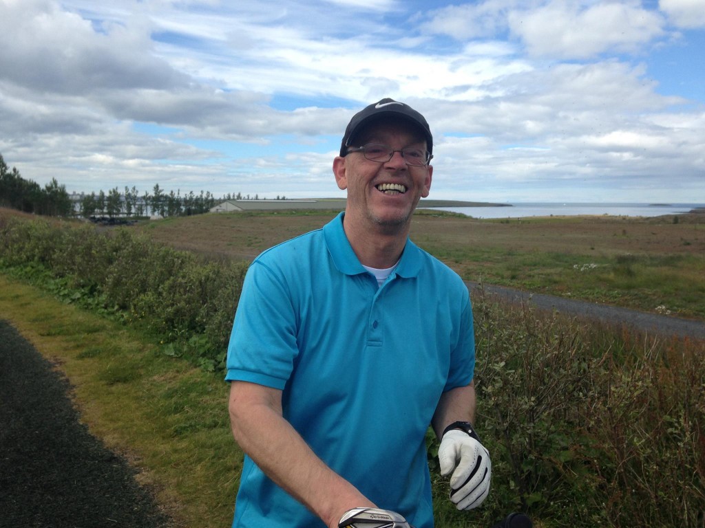 Hann gerði sér lítið fyrir og sló holu í höggi á þessari tilvonandi 18. braut Hlíðavallar.