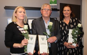 Heiðursviðurkenningar GO hlutu: f.v. Jóhanna Dröfn Jóhanna Dröfn Kristinsdóttir, Atli Stefánsson og Halla Hallgrímsdóttir sem tók við viðurkenningu fyrir hönd föður síns, Hallgríms Þorsteinssonar. Mynd: GO