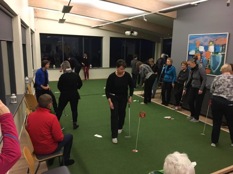 Segja má að almenn ánægja hafi verið með að vera á heimavelli og næsta laugardag, 20. janúar verður völlurinn kominn í sitt endanlega form og má búast við enn skemmtilegri púttkeppni.