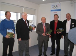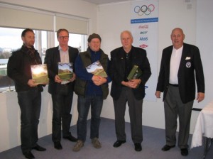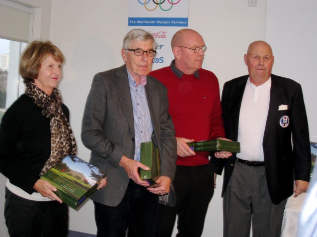 Úlfar Jónsson, landsliðsþjálfari, (lengst t.v.) var meðal þeirra sem hlutu fyrstu bækurnar af Golf á Íslandi. Mynd: Golf 1