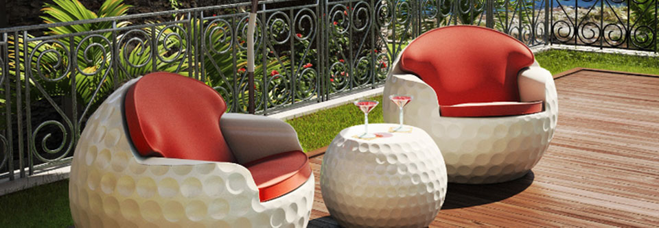 Svo er vinsælt að nota golfklúlur t.d.í húsgögn, t.a.m. blómapotta,  ljós eða garðhúsgögn: