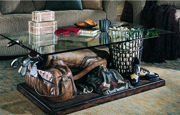 Svo eru enn aðrir sem kannski eru ekki haldnir neinni sérstakri safnáráttu en vilja hafa golfið nálægt sér bæði inn á velli og utan þess, jafnvel inni í íbúðum og húsum sínum eða utan þeirra ….. í formi húsgagna.