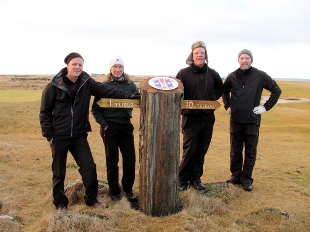 Bergljót Kristinsdóttir GKG (second from left) and Ásgeir Eiríksson (second from right) were among the winners in Sandgerði yesterday. Photo: Golf 1 GSG: Helgi Birkir Þórisson og Ásgeir Eiríksson sigruðu í Janúarmóti GSG nr. 1 – Myndasería