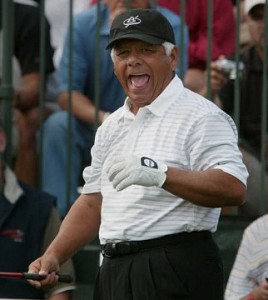 Kylfingurinn snjalli Lee Trevino var eitt sinn að slá garðinn heima hjá sér.