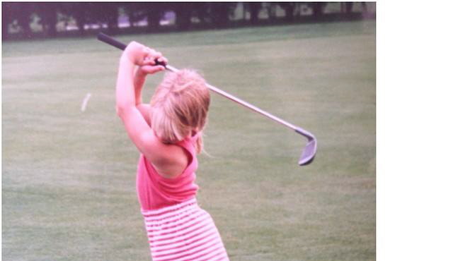 Um myndina segir Pressel að hún sé tekin af 1. golfsveiflu sinni! Býsna góð sveifla það …. enda Pressel ein af þeim bestu í golfinu í dag. Það borgar sig að byrja ungur í golfi!