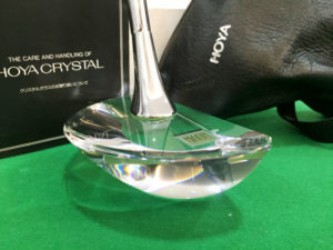 Allir þarfnast kristalls púttara. Þessi er búinn til af japanska fyrirtækinu Hoya; hann bogadreginn og búinn til úr einhverjum besta kristall sem finnst. Innifalið í verðinu er leður „head cover“ og leiðbeiningar um viðhald. Verðmiðinn á þessum er kr. 666.600,-