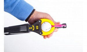 Gúmmikrækjan á enda græjunni auðveldar líka að hægt sé að pikka tíið aftur upp án þess að þurfa að beygja sig.