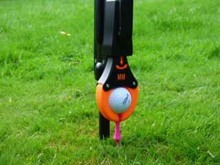 Tee-Up græjan er létt og auðvelt að nota hana – en tíinu er skotið úr græju sem líkist byssu og er auðvelt að aðlaga hana að hæð og hvers konar tí kosið er að nota.