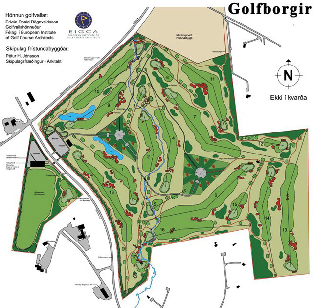 Um er að ræða 56 ha land en á landið er búið að hanna og móta 18 holu golfvöll.