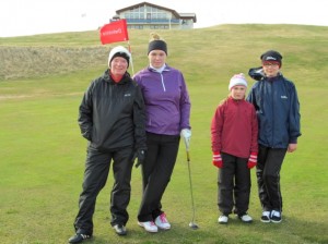 F.v.: Guðríður Vilbertsdóttir, GS; Elísabet Sara Cavara Árnadóttir, GS, sem var með flesta punkta í mótinu eða 43!!!; Kinga Korpak, GS og systir Kingu, Zuzanna. Mynd: Golf 1