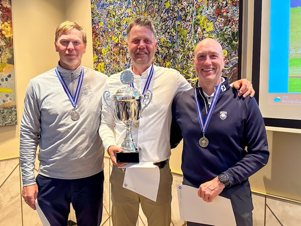 Í aðalmyndaglugga f.v.: Hjalti – Jón Karlsson Íslandsmeistari karla 50+ 2023 – Sigurbjörn. Mynd: GSí