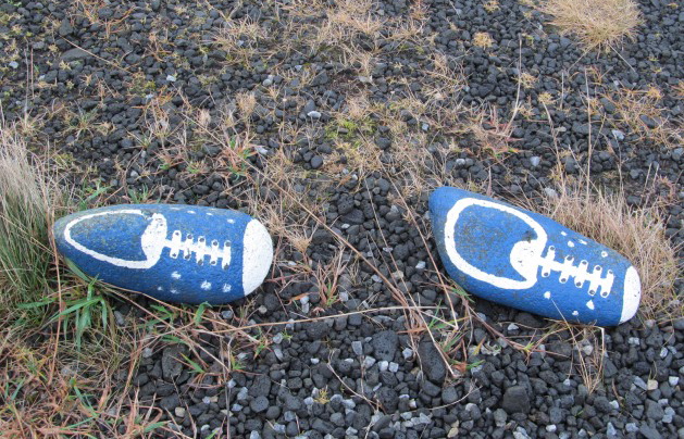 Þegar betur var að gáð kom í ljós að þetta voru tveir steinar sem höfðu verið svo listilega málaðir, að þeir líktust bláum golfskóm!
