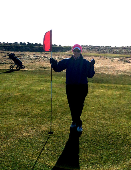 Kristín Dagný Magnúsdóttir, GR, við 15. holu í Sandgerði eftir draumahöggið! Mynd: GSG