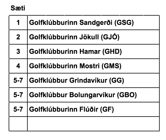 Golfklúbburinn Jökull frá Ólafsvík (GJÓ) varð í öðru sæti og Golfklúbburinn Hamar frá Dalvík (GHD) í því þriðja.