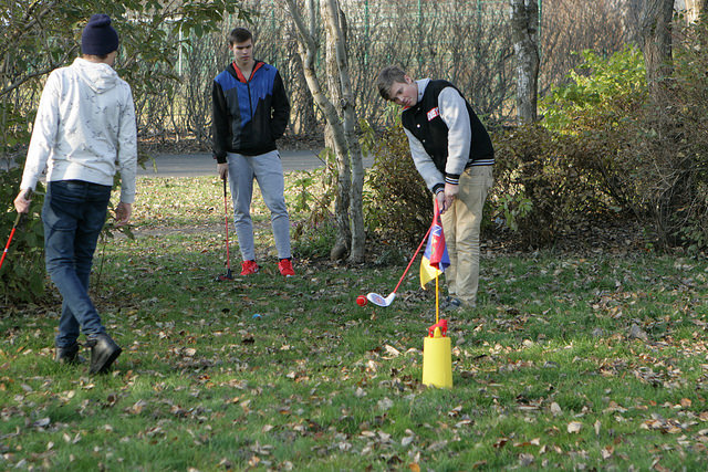 Fyrir utan golfnámið sjálft fá nemendur í golfáfanganum einnig að hanna golfbrautir og golfvelli inni í sal og umhverfis skólann og spila og keppa bæði inni og úti við eins og sjá má á myndunum hér fyrir neðan (Myndir: GSÍ):