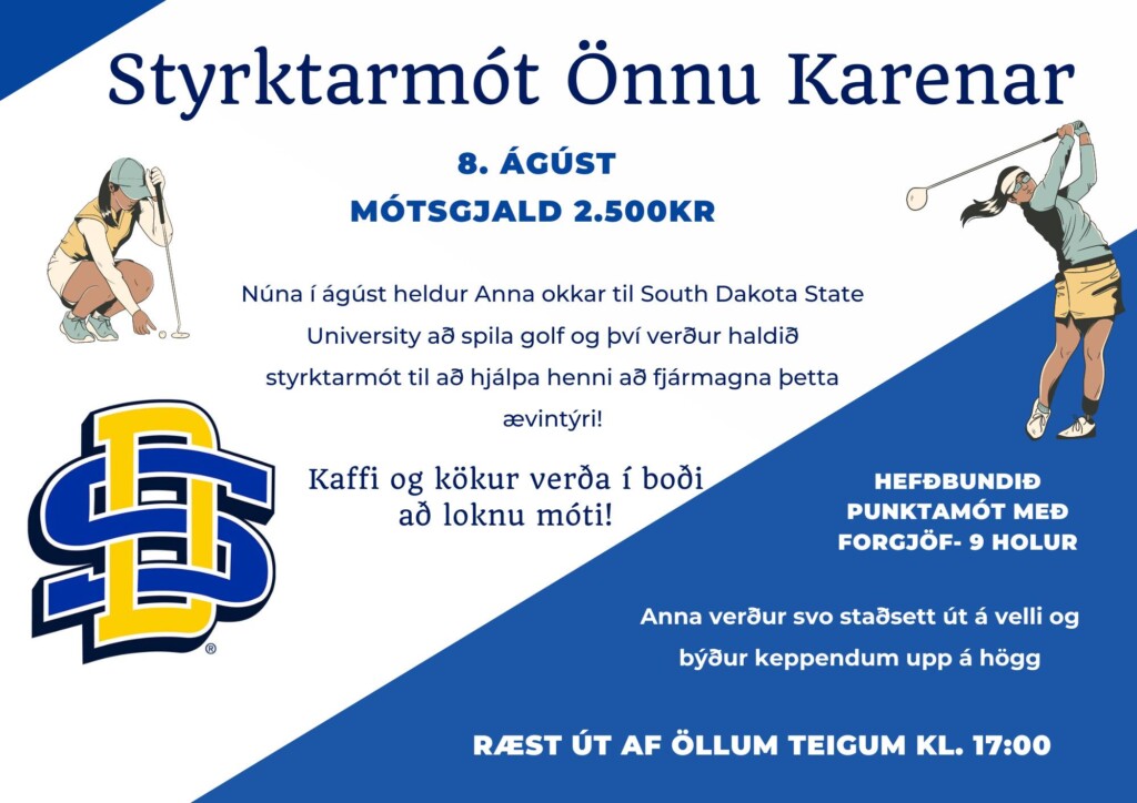 Anna Karen Hjartardóttir, klúbbmeistari kvenna í GSS, mun hefja nám við Suður-Dakóta háskóla (þ.e. South Dakota State University) nú í haust og spila golf með golfliði skólans.