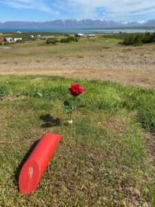 Fallega blómum skreyttir teigar á Hlíðarendavelli í árlegu kvennagolfmóti GSS 2020 og fagur Skagafjörðurinn í baksýn. Mynd: GSS