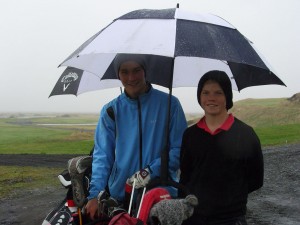 Gunnhildur Kristjánsdóttir og Særós Eva Óskarsdóttir, GKG, voru með í Páskamóti Hellishóla í dag. Mynd: Golf 1.