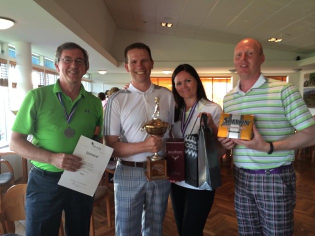 Afmæliskylfingurinn ásamt eiginmanni í miðju myndar á Loftleiðir Masters 2014 þar sem 2. sætið náðist!!