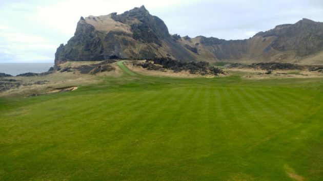 „Nú er allt komið á fullt á vellinum hjá okkur. Byrjað var að slá flatir fyrir 3 vikum og brautir og teiga viku síðar. Opnað var inn á sumarflatir á 1-12 á sumardaginn fyrsta (19. apríl s.l.) og stefnt er á að opna inn á 13-18 seinni part næstu viku (Innskot Golf1: það er núna!!!) Ástandið á vellinum er eins og best verður á kosið eins og meðfylgjandi mynd af 14. flötinni sýnir. Farið var í sérstakar aðgerðir í haust og vetur til að verja flatirnar fyrir vetrarskaða, m.a. voru settir plastdúkar yfir flatirnar næst sjónum til að verja þær fyrir ágangi sjávarins og fleiri umhverfisþáttum. Það hefur skilað sér vel og við hlökkum til að opna allar 18 í næstu viku.“