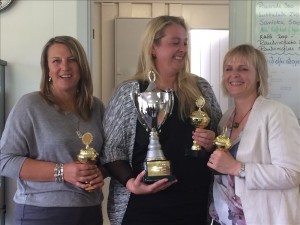 F.v.: Dóra Henriksdóttir, 2. sæti, Jófríður Friðgeirsdóttir klúbbmeistari kvenna í GVG 2014 og Anna María Reynisdóttir