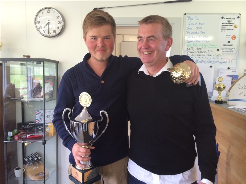 F.v.: Margeir Ingi Rúnarsson, klúbbmeistari GVG 2. árið í röð (uppáhaldskarlkylfingur Auðar Kjartansdóttur)og Ásgeir Ragnarsson, sem varð í 2. sæti. Mynd: GVG