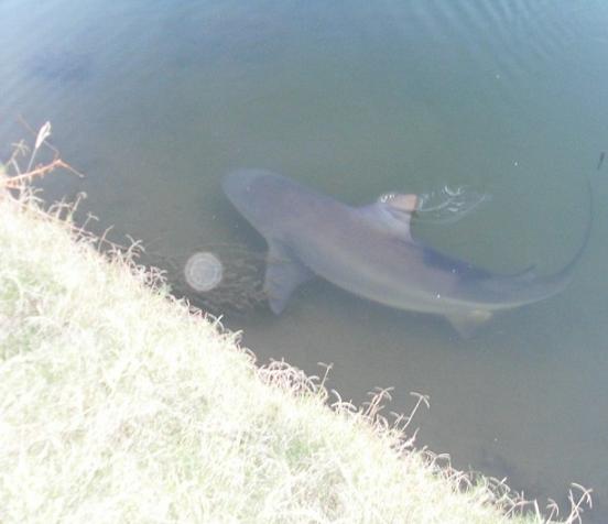 Þegar Logan áinn flæddi yfir golfvöllinn snemma á 9. áratug síðustu aldar bárust með allra handanna fiskitegundir þ.á.m. ungir hákarlar.