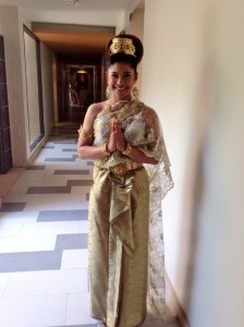 Pornanong Phattlum tekur sig vel út í tælenska kjólnum!