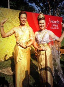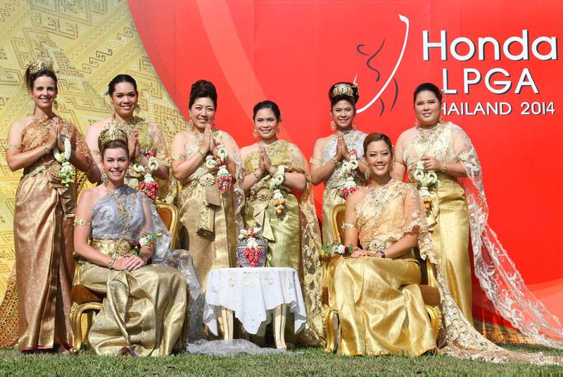 Til þess að auglýsa mótið fóru 8 LPGA leikmenn í myndatöku í gær og létu taka myndir af sér í hefðbundum tælenskum kvenklæðnaði.