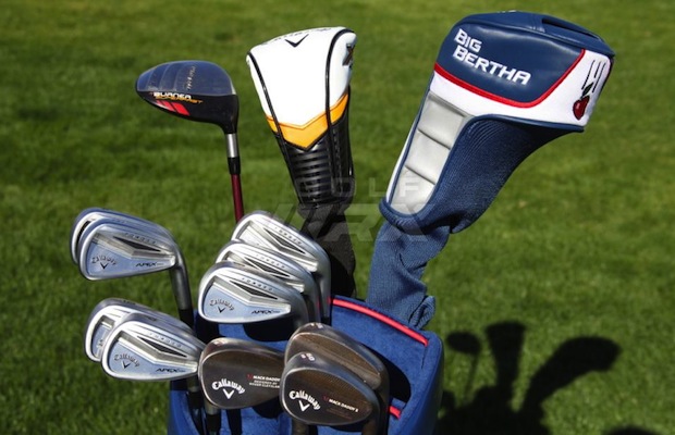 • FLEYGJÁRN: Callaway Apex Pro (48° KBS Tour-V 125 X sköft) og Callaway Mack Daddy 2 (52°, 56°, 60° True Temper Dynamic Gold Tour Issue S400 sköft).