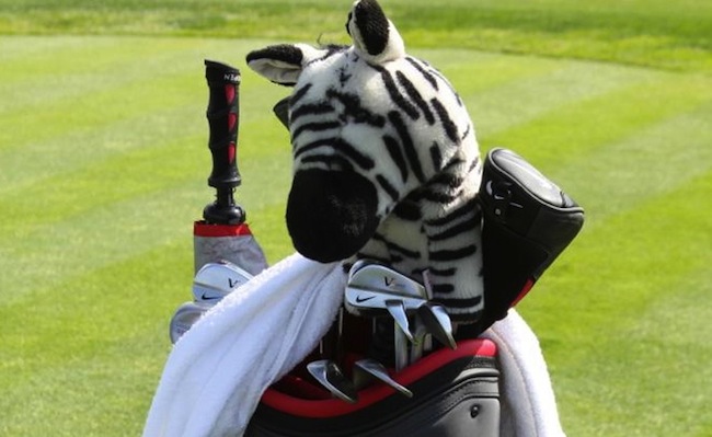 Takið svo eftir flotta gíraffakylfu-coverinu, sem Schwartzel er með!