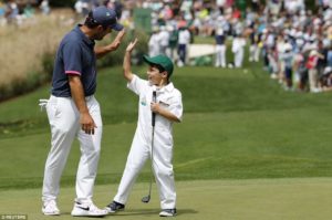 Francesco Molinari ásamt syni sínum Tommasso á Masters