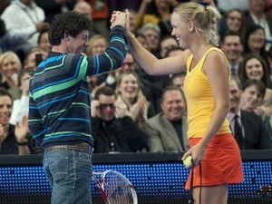 Núverandi kæresta Rory er nr. 4 í heimi tenniskvenna, hin danska Caroline Wozniacki og birtast stöðugt fréttir af turtildúfunum sætu, en það nýjasta er frá því í gær þegar Rory var að horfa á sýningarleik Caroline og Mariu Sharapovu og fékk að spila tennis við Maríu og vann stig af henni! Sjá Rory spila tennis í Madison Square Garden við Maríu Sharapovu HÉR: