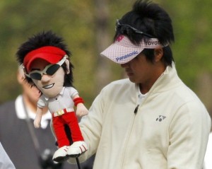 Ryo Ishikawa með Ryo dúkkunni vinsælu, en hún var vinsælt kylfu cover í Japan og víðar.