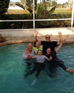 Horschel fjölskyldan henti sér út í sundlaugina af gleði eftir að Billy Horschel vann á Zurich Classic!!!