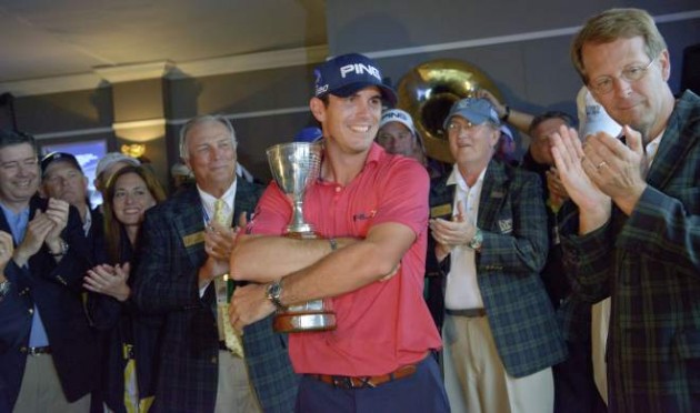 Billy Horschel 26 ára fagnaði 1. PGA Tour sigri sínum í gær, 28. apríl 2013 á Zurich Classic, í New Orleans, Louisiana.