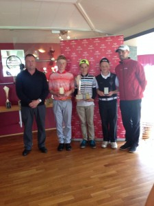 Sigurvegarar í strákaflokki á Íslandsmótinu í höggleik 2014. F.v. Ingvar Andri, GR, 3. sæti; Íslandsmeistarinn Ingi Rúnar, GKG og Kristófer Karl, GKJ, 2. sæti. Mynd: Í einkaeigu