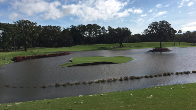 Par-3 eyjaflötin á 17. holu TPC Sawgrass er ein af frægustu golfflötum heims.