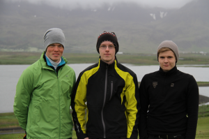 Þessir hófu leik í morgun kl. 7:30 f.v.: Arnór Tumi Finnsson, GB, Gústaf Orri Bjarkason, GK og Skúli Ágúst Arnarson, GO. Mynd: golf.is