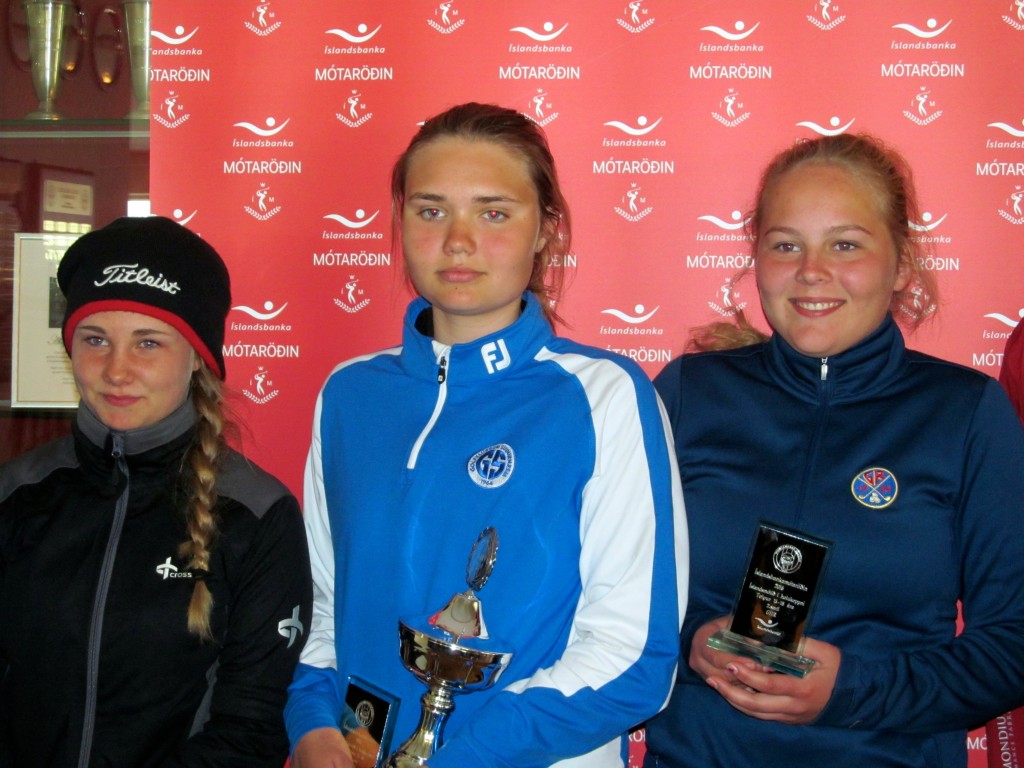 Íslandsmeistari telpna í holukeppni 2015 Zuzanna Korpa (f.m.); T.v.: Ólöf María Einarsdóttir, GHD, 3. sæti og T.h.: Gerður Hrönn Ragnarsdótir, GR. Mynd: Golf 1