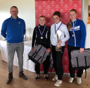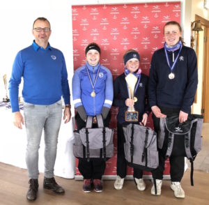 F.v.: Frá vinstri. Jóhann Páll Kristbjörnsson formaður GS, María Eir, GM; 3. sæti Perla Sól, GR, Íslandsmeistari og Nína Margrét, GR, 2. sæti. Mynd: GSÍ